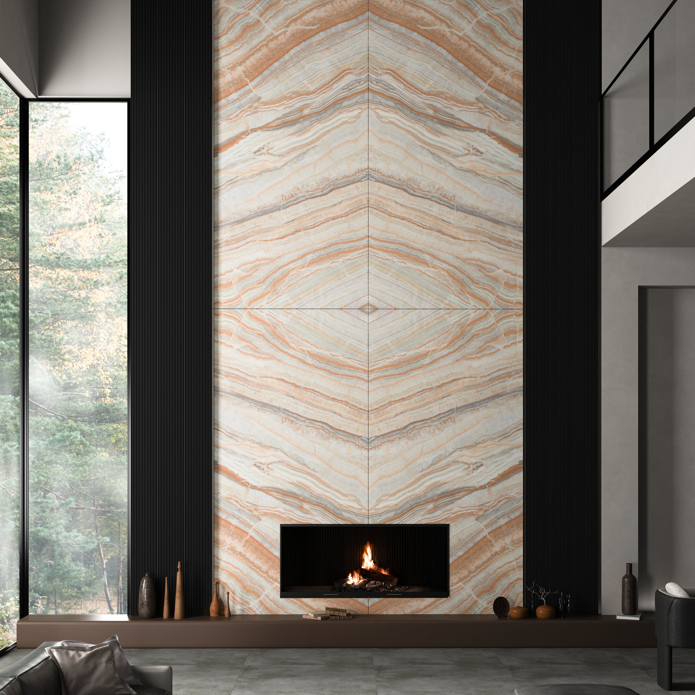 Onice Rainbow Bookmatch Porcelain Slabs showcase a stunning, natural stone-inspired design with vivid rainbow hues and precise bookmatched patterns. Crafted from durable porcelain, these slabs offer exceptional strength, stain resistance, and low maintenance, making them ideal for high-traffic surfaces. Their seamless, mirrored effect enhances any interior setting with a sophisticated, artistic touch, perfectly suited for countertops, wall cladding, or flooring where durability and aesthetic appeal are equally essential.